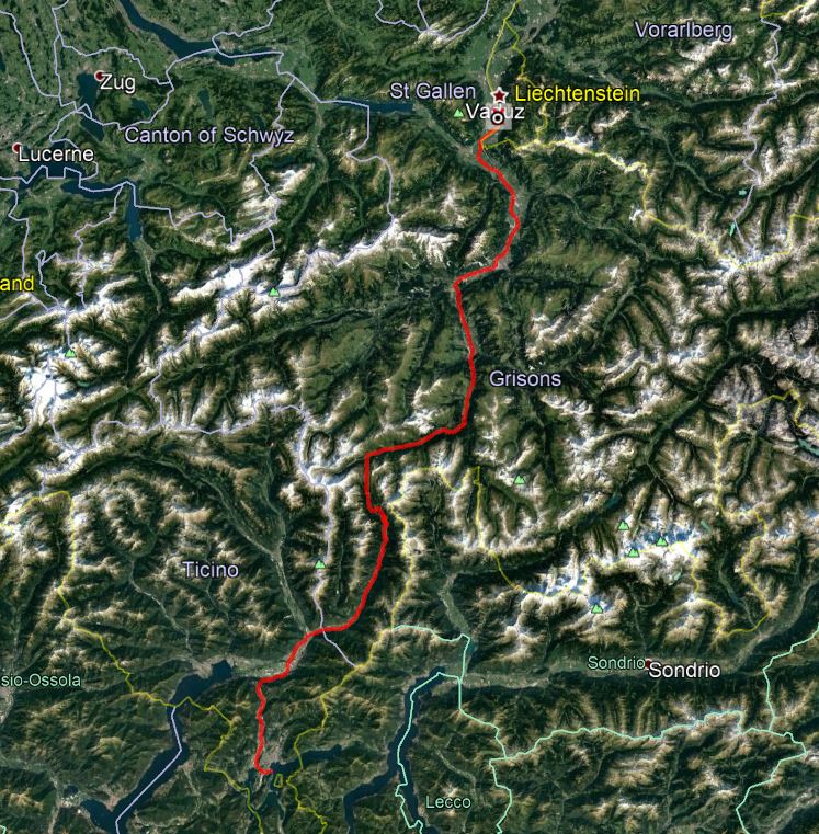 Vaduz to Lake Lugano Route