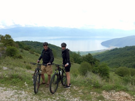 After some research, Lake Ohrid, at the border of Albania and Macedonia kept bubbling up as a top destination. We started developing a road trip that included Ohrid and other destinations, but soon realized that renting a car in one Balkan country and returning it in another (a la our Micronations Roadtrip, where we picked up a car in Rome and dropped it off in Barcelona), was problematic, as were many aspects of a week-long roadtrip. Instead, we found a perfect bike trip that featured biking and hiking all over the place in Macedonia, 3 nights in Ohrid, and a segment of riding in Albania. One twist to this was that the bike trip was guided, not self-guided. All eight of our previous bike trips in Europe had been self-guided, and this continues to be our preference. However, this option wasn’t available – the ideal bike (and hike) tour for us was only offered in guided form. We (now obviously) booked it, and had a great experience. We’ll still stick to self-guided biking in the future for reasons we’ll note in a subsequent post, but the private, guided option worked great in the Balkans (and we had a 1:1 ratio of riders to tour staff, which was interesting).