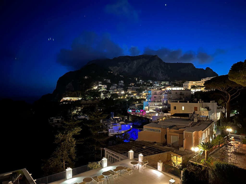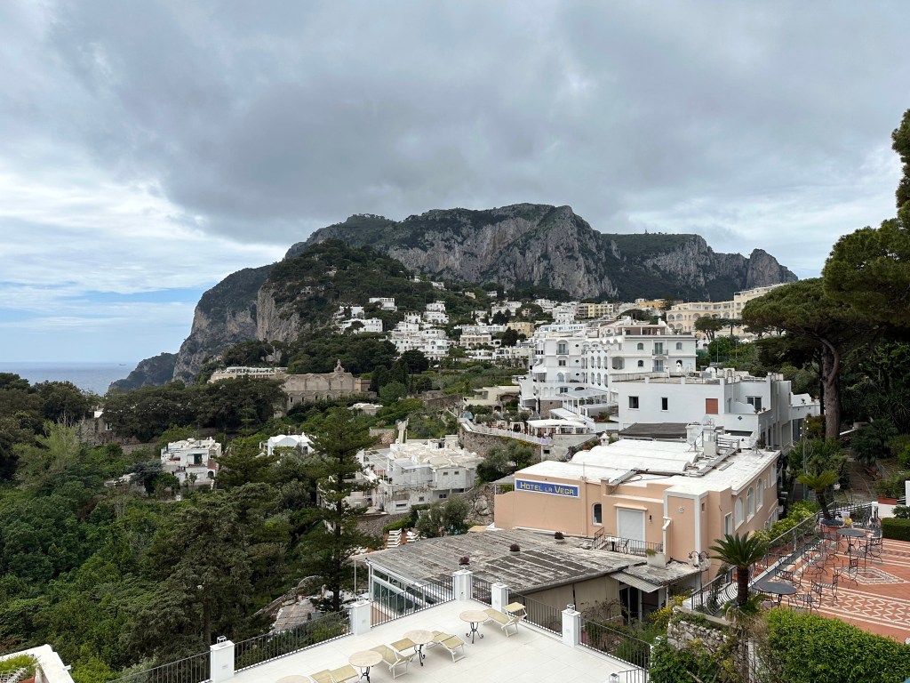 From Herculaneum (and Naples), we originally had planned to head next to Sorento on the Amalfi Coast, and then to Positano. A couple we met in Botswana on safari in 2018, who’s travel style is almost identical to ours, and who we keep in touch with, advised against this. They travel in Italy at least twice a year, and had a lot of insight into the Amalfi Coast, in particular. As far as Sorento went, they found this to be devoid of charm and recommended instead that we spend a few days just opposite that town, on the island of Capri. So we cancelled our Sorento reservations (this discussion occurred during our planning phase) and found a cool place on Capri instead, which is where we headed next. (We’ll cover the Positano issue in the next post.)