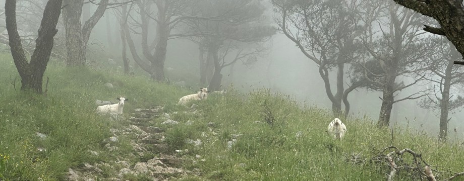 And out of the mist? Goats!