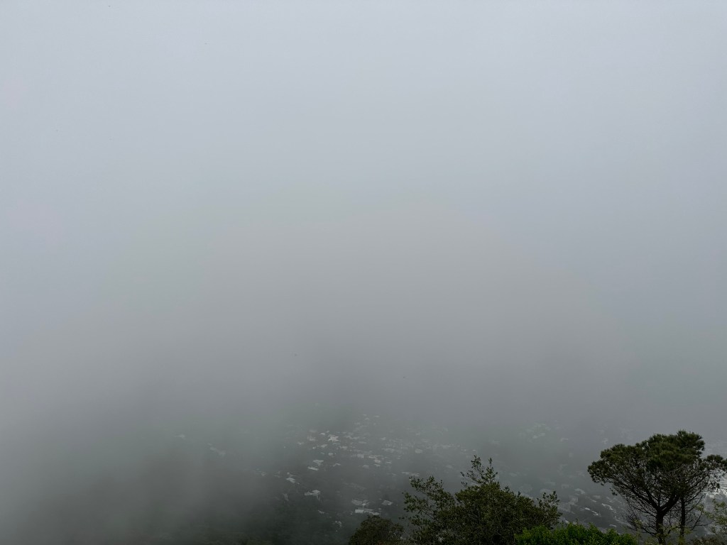 Or, as it unsurprisingly turned out, a replay of our hike’s apex on Arthur’s Seat in Edinburgh: zero visibility.