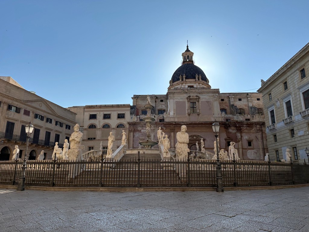 Although Sicily’s long history is better witnessed in cities like Syracuse on the southeast coast, where the Greeks first settled and which dominated trade and politics, we began our stay on Sicily in its current capital of Palermo, in the northwest. After the Arab conquest in the 9th century, the focus shifted westward to Palermo, which became the administrative and commercial capital under Muslim and later Norman rule. Its superior harbor and position on Mediterranean trade routes cemented Palermo’s long-term dominance.