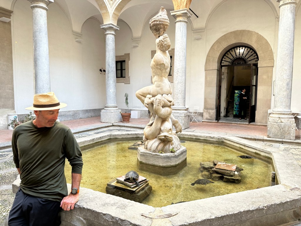 Including its signature leopards, which now are not only the symbol of the palace, but, we found at a stay later, adorn a line of high-end Sicilian toiletries at hotels (the brand name itself is the urban island in Syracuse, which we’d visit later in the trip – this whole experience keeps folding in on itself).