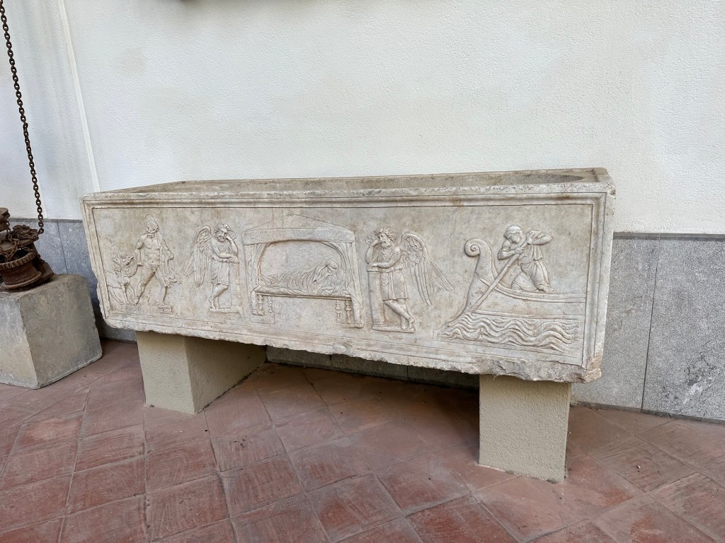 Very cool, later, Roman sarcophagus featuring Charon on the right and Hercules on the left: