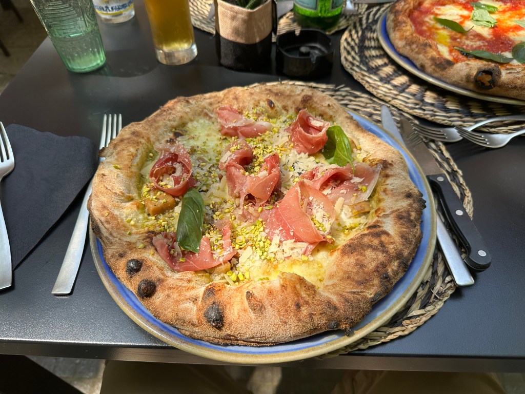 All of which made us hungry. Hungry for pizza with, um, pistachios? This would be a staple on the island – the Sicilians LOVE their pistacios:
