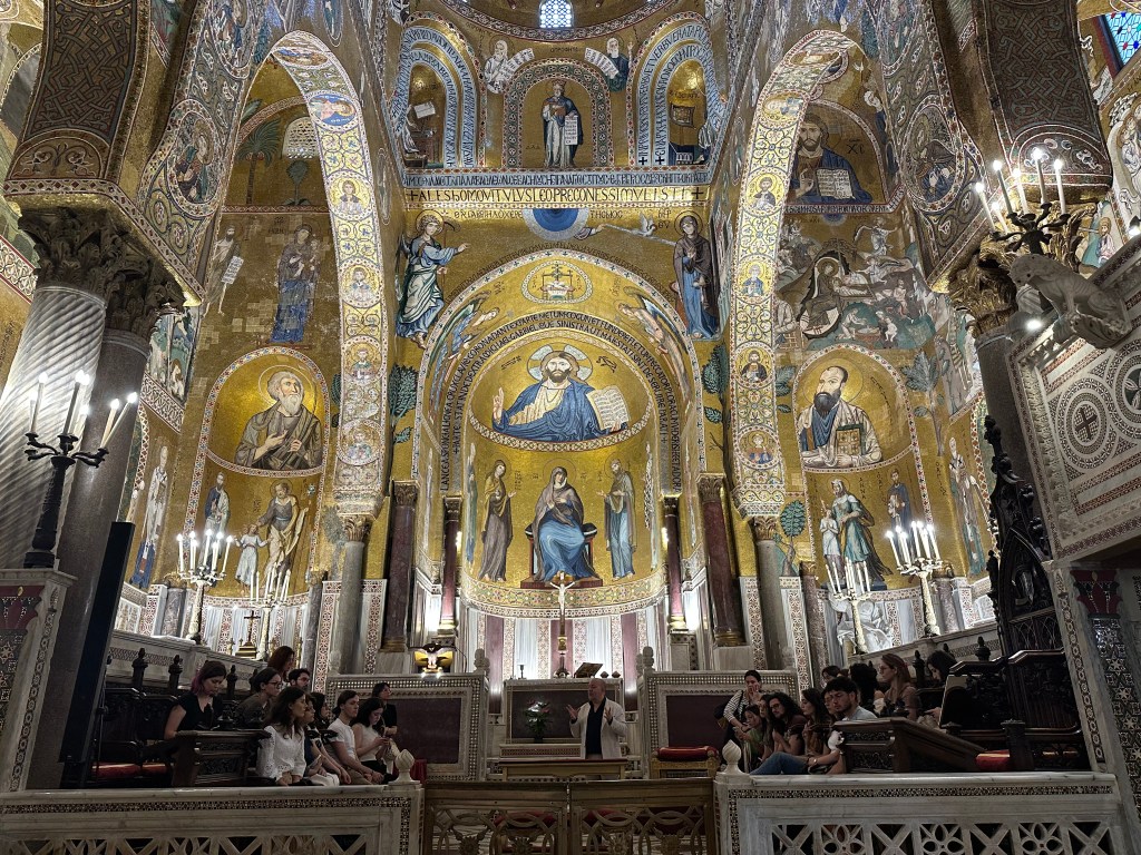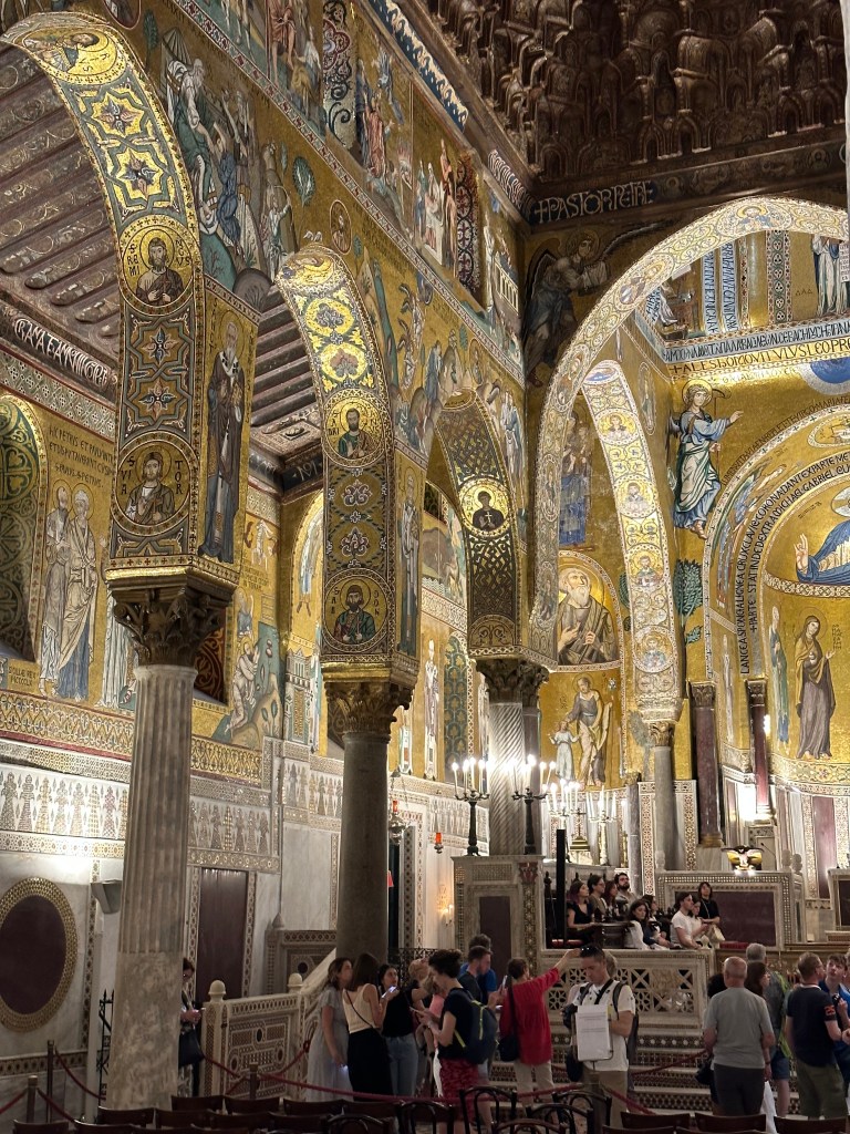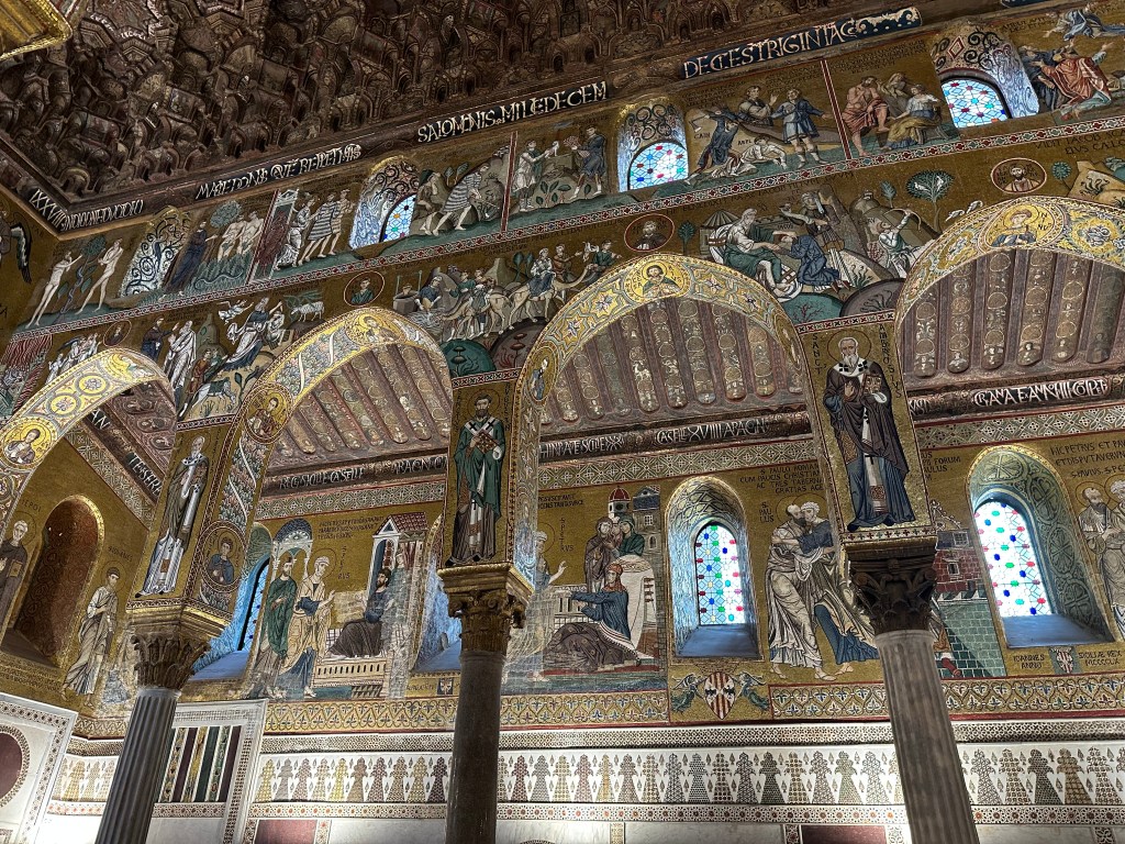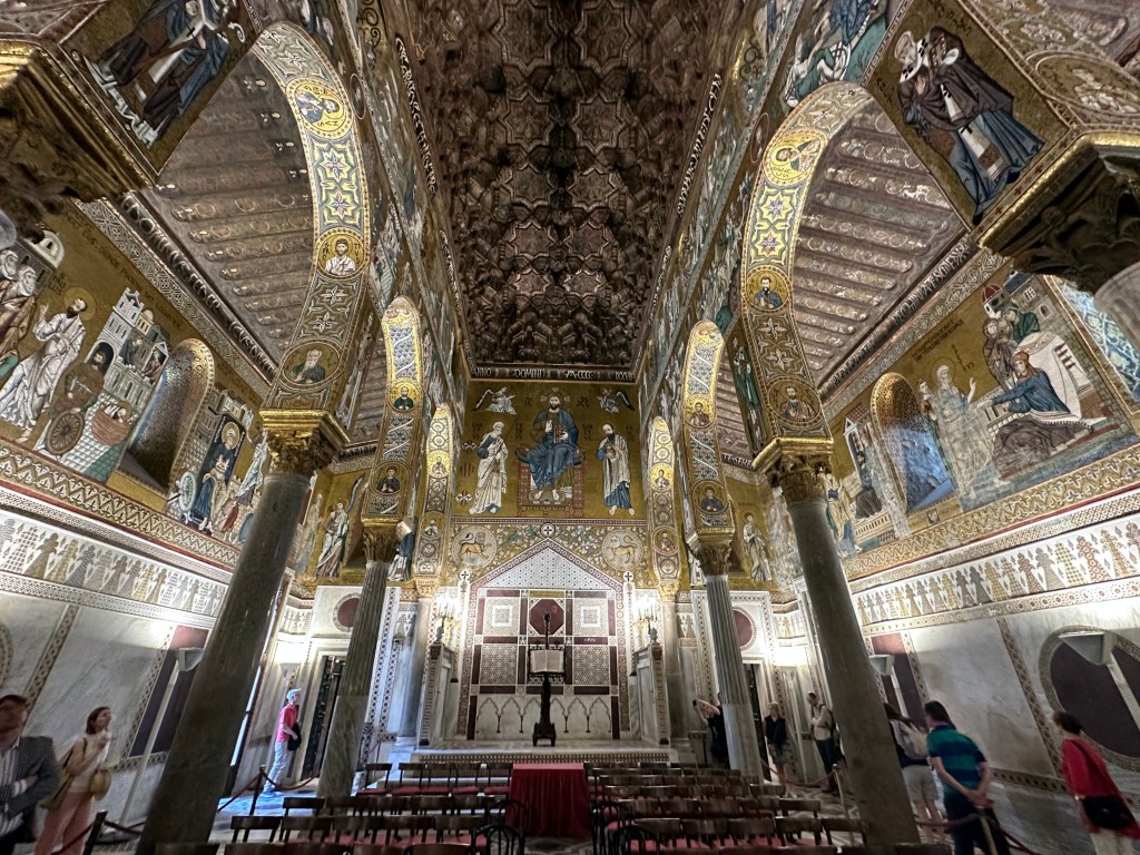 Commissioned by Roger II of Sicily in 1132, the architecture represents a blend of Byzantine, Norman, and Fatimid styles that is unique to Sicily (we’d see another, even grander example right after we left Palermo).